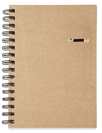 Features : Eco square spiral bound notebook cover. Matching elastic closure and built in pen loop. 100 ruled sheets included.